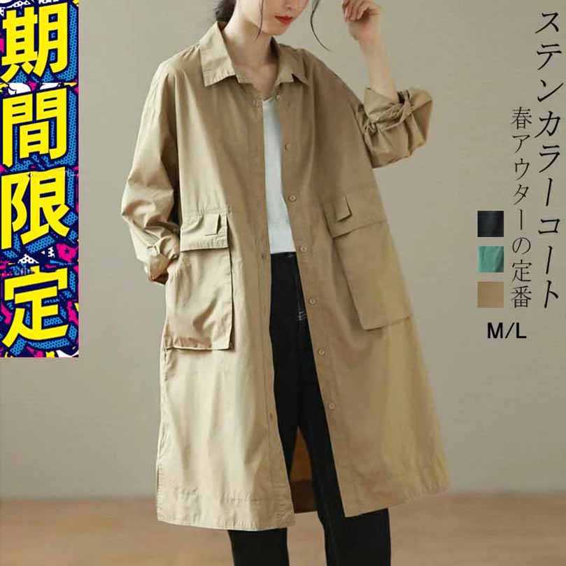 コート スプリングコート レディース 春 オーバーサイズ 襟付き ブルゾン ロング 大きいサイズ アウター ライトアウター羽織り 春新作
