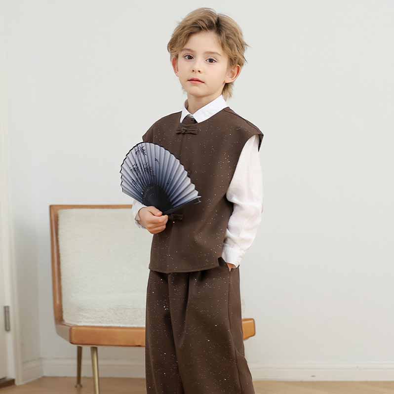 フォーマルスーツ 4点セット 男の子 おしゃれ タキシード 子供服 キッズ 入学式 卒業式 卒園式 お受験 発表会 結婚式 長袖 パンツ 中国風セットアップ