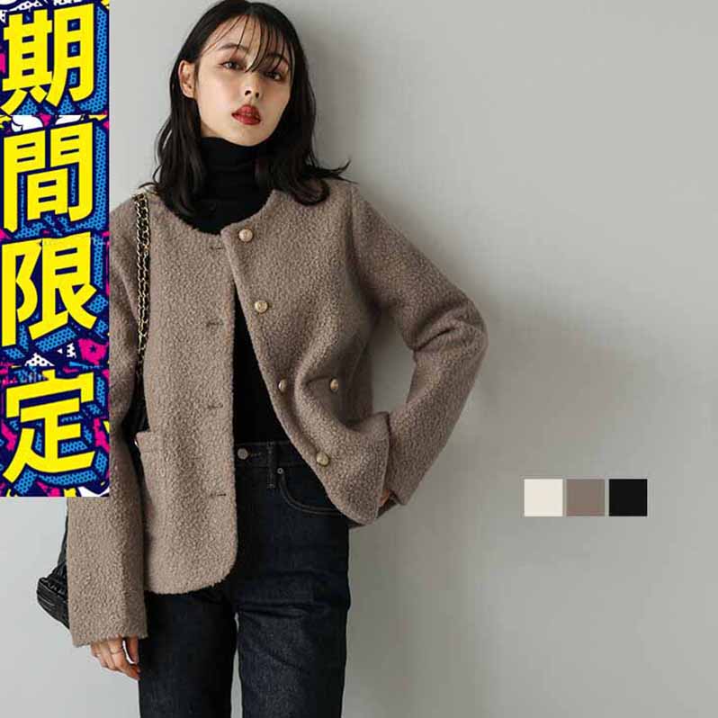 ノーカラー ジャケット ブルゾン もこもこ アウター レディース キレイめ 大人可愛い