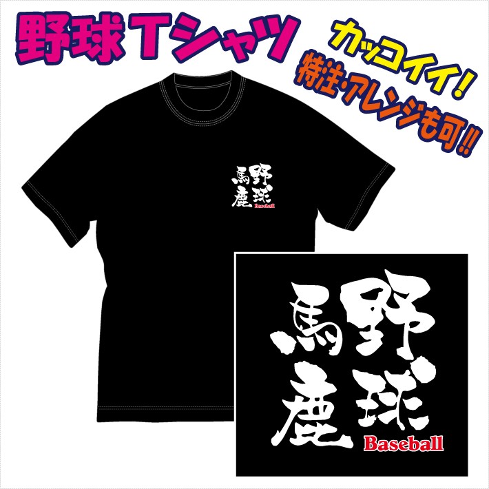 渋かっこいい「文字プリントTシャツ(野球馬鹿/野球 他)」デザイン確定から発送まで約1週間。色々なアレンジが可能です。DM便発送可 (1着につき送料160円)