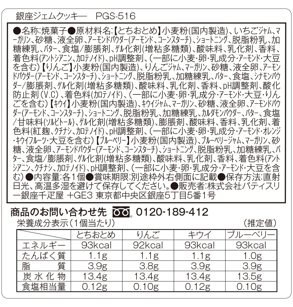 ●特定原材料等(28品目):小麦・卵・乳成分・アーモンド・オレンジ・キウイフルーツ・大豆・りんご