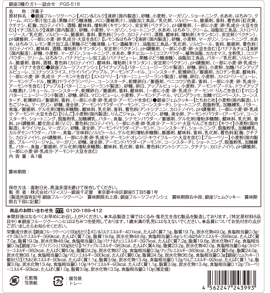 ●注意事項:銀座フルーツクーヘンにははちみつを使用しております。