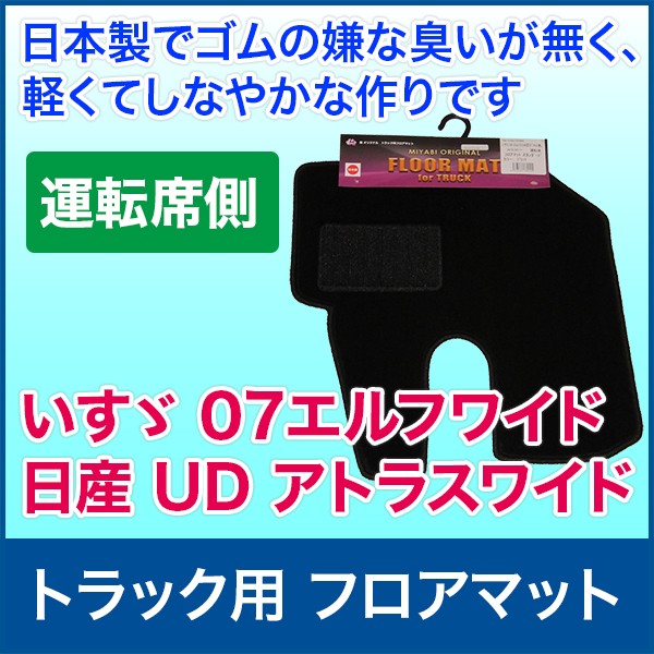トラック用 フロアマット いすゞ(07エルフワイド) / 日産UD(アトラスワイド) 日本製 洗濯可 黒
