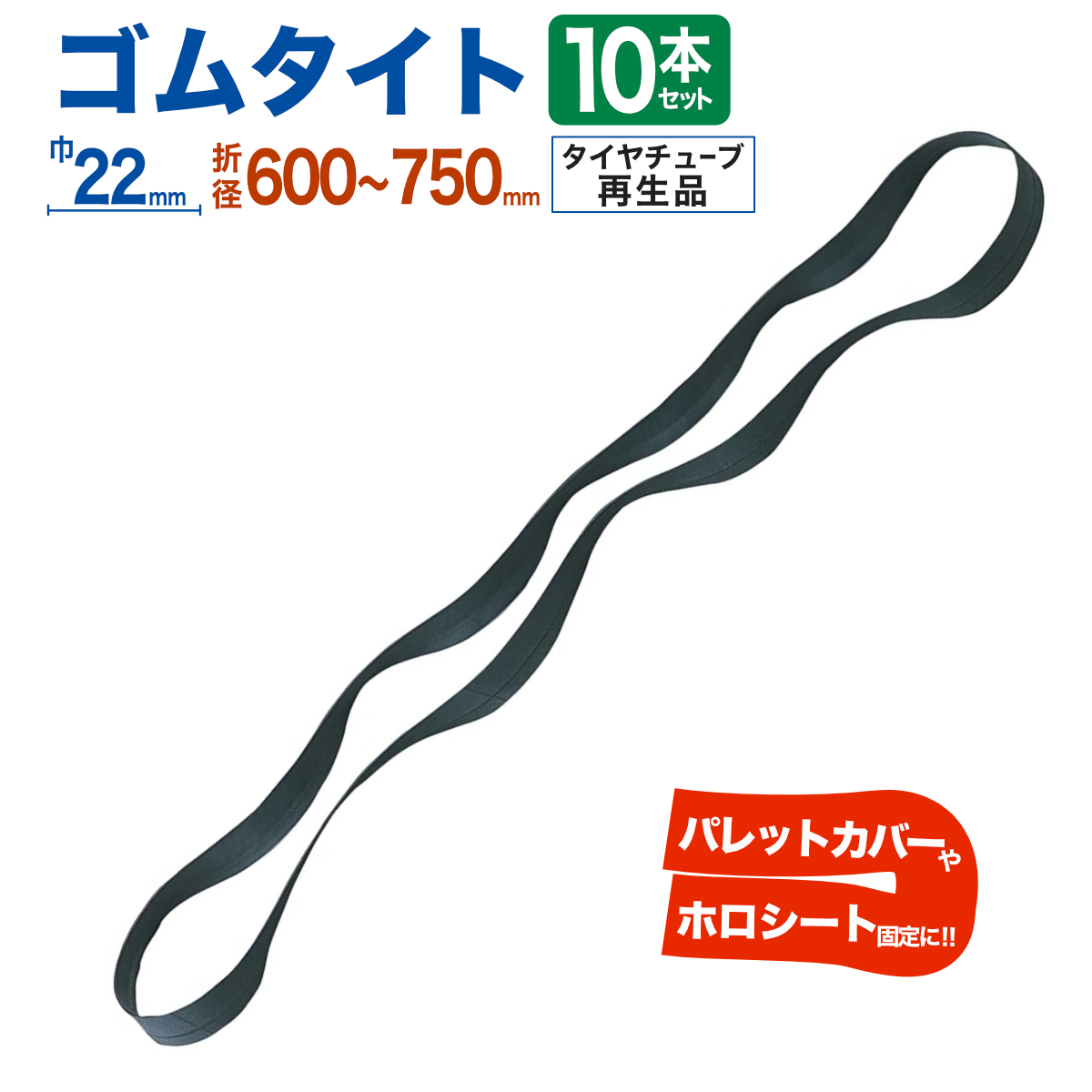 ゴムタイト 幌用 10本入 幅22mm 折径600〜750mm タイヤチューブ再生品 トラック 軽トラ シート固定 ゴムバンド ロープ ベルト 紐