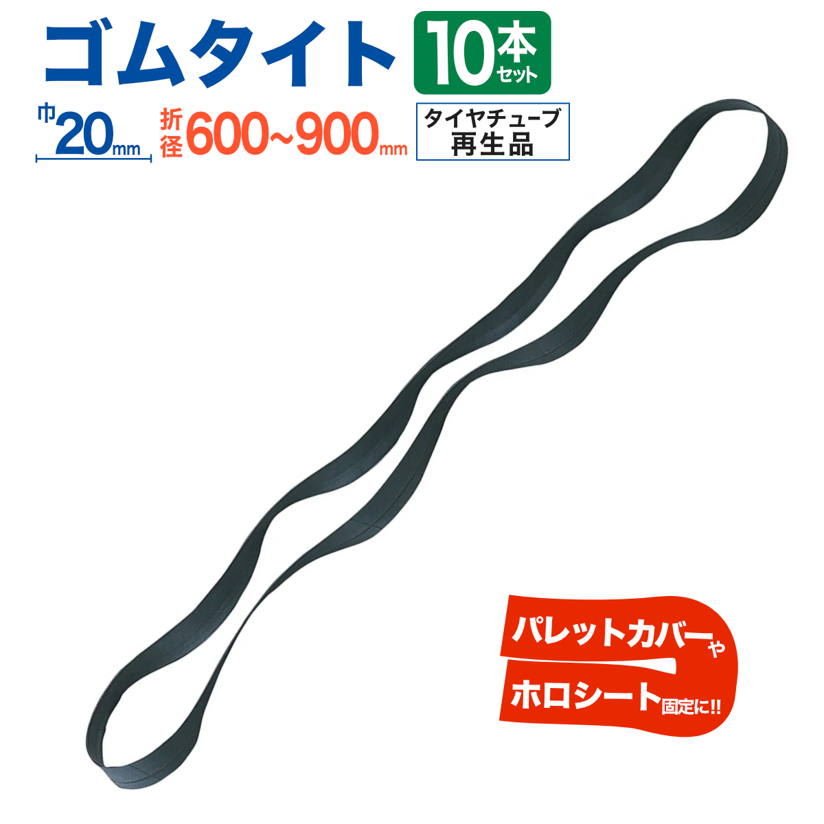ゴムタイト 幌用 10本入 幅20mm 折径600〜900mm タイヤチューブ再生品 トラック 軽トラ シート固定 ゴムバンド ロープ ベルト 紐