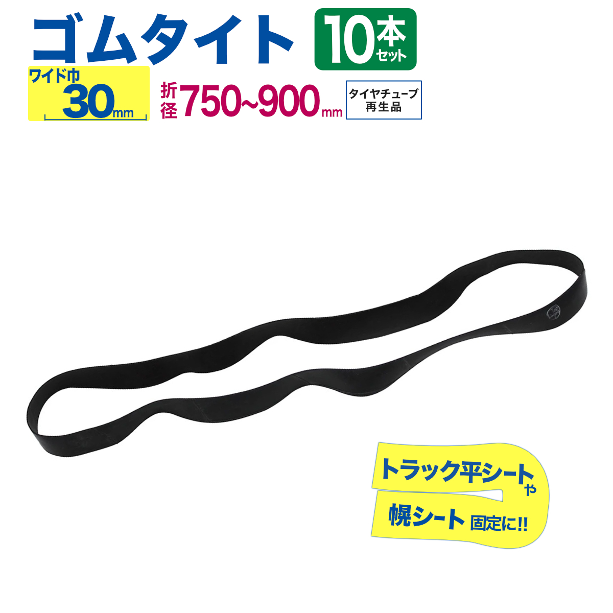 ゴムタイト 幌用 10本入 ワイド幅30mm 折径750〜900mm タイヤチューブ再生品 トラック 軽トラ シート固定 ゴムバンド ロープ ベルト 紐
