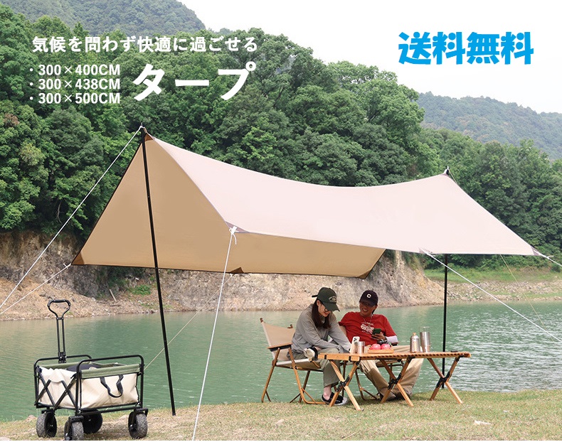 タープ 日除けシェード 防水 ポール付き UPF50+ 超軽量 4-6人用 コンパクト 遮光 遮熱 防風 キャンプ