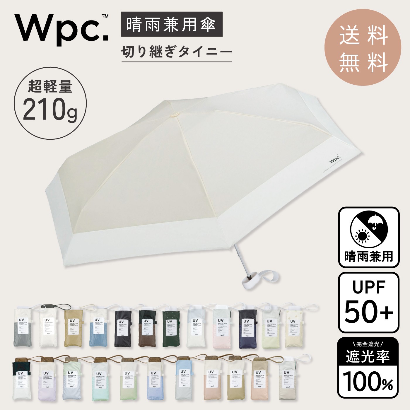 WPC, 日傘 折りたたみ傘 軽量 遮光切り継ぎタイニー 23カラー 晴雨兼用 ケース つき 紫外線対策 紫外線防止
