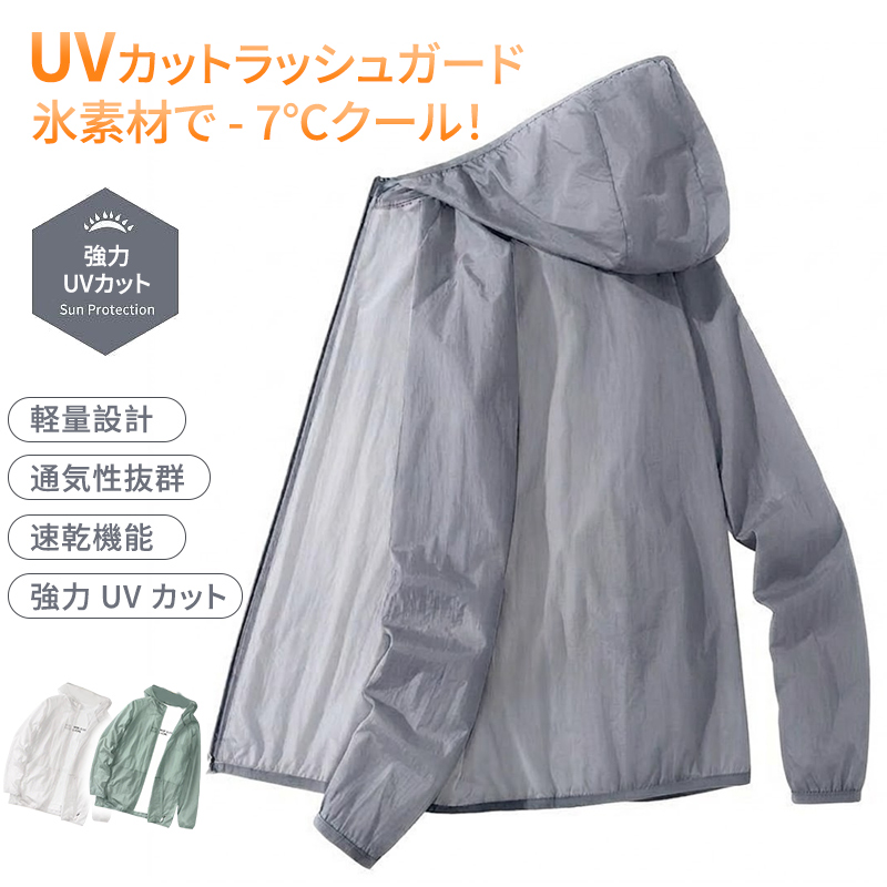 \2 枚購入で 500 円オフ!/UV カット ラッシュガード 氷素材 強力 UV カット -7℃クール 軽量設計 通気性抜群 速乾機能 薄手 吸水速乾 フーデッドデザイン