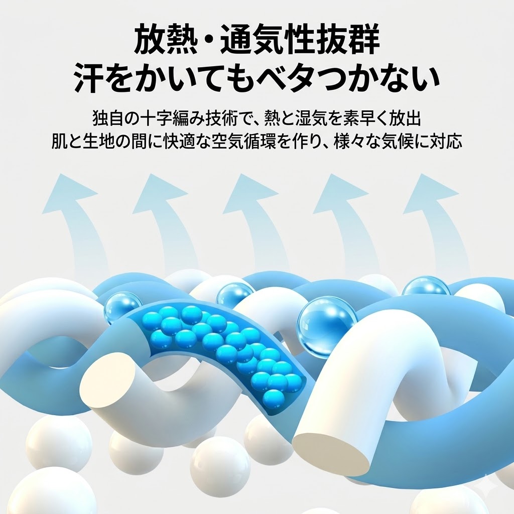 速乾機能:汗や水を素早く吸収・乾燥させるため、スポーツやレジャーなどのアクティブなシーンでも活躍します。