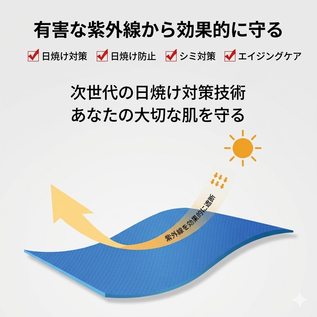 強力 UV カット:紫外線をしっかりカットし、お肌を日焼けや光老化から守ります。アウトドアや通勤・通学に最適です。