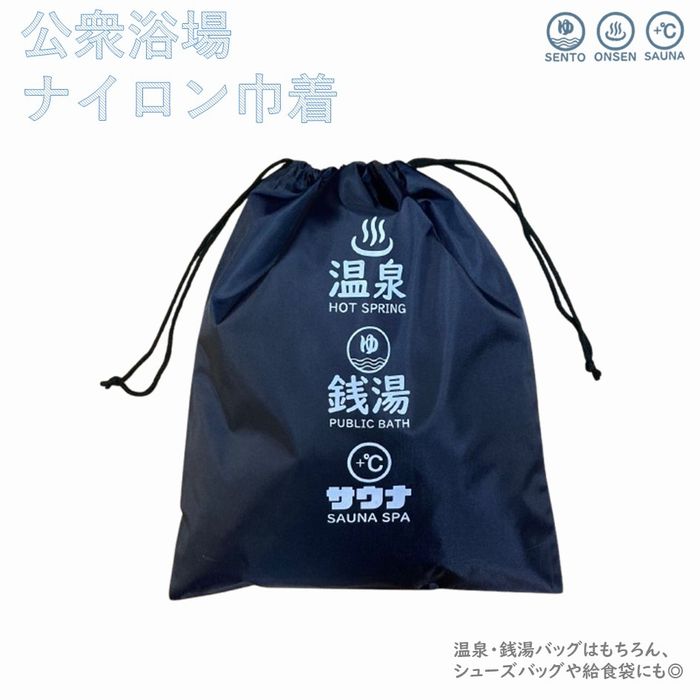 公衆浴場 ナイロン 巾着 ナイロン巾着 バッグ シューズ入れ 体操服袋 給食袋 温泉グッズ 銭湯グッズ サウナグッズ サブバッグ 温泉バッグ 銭湯バッグ KY-NCPL2