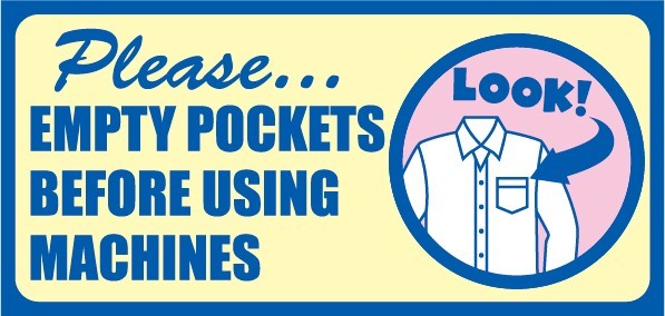◆ サインプレート ステッカー [ 洗濯前にポケットの確認を! ] シール デカール 看板 インテリア アメリカン雑貨 注意喚起 店舗用品 メール便対応 PS-32