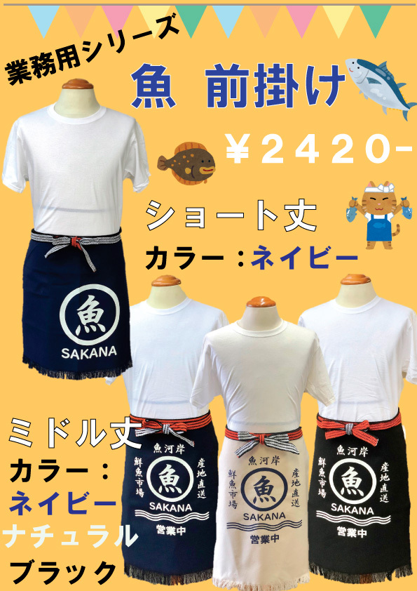 業務用 魚 前掛け 全4種類エプロン 帆前掛け 仕事着 ユニホーム 商店街 魚屋 漁業 漁師