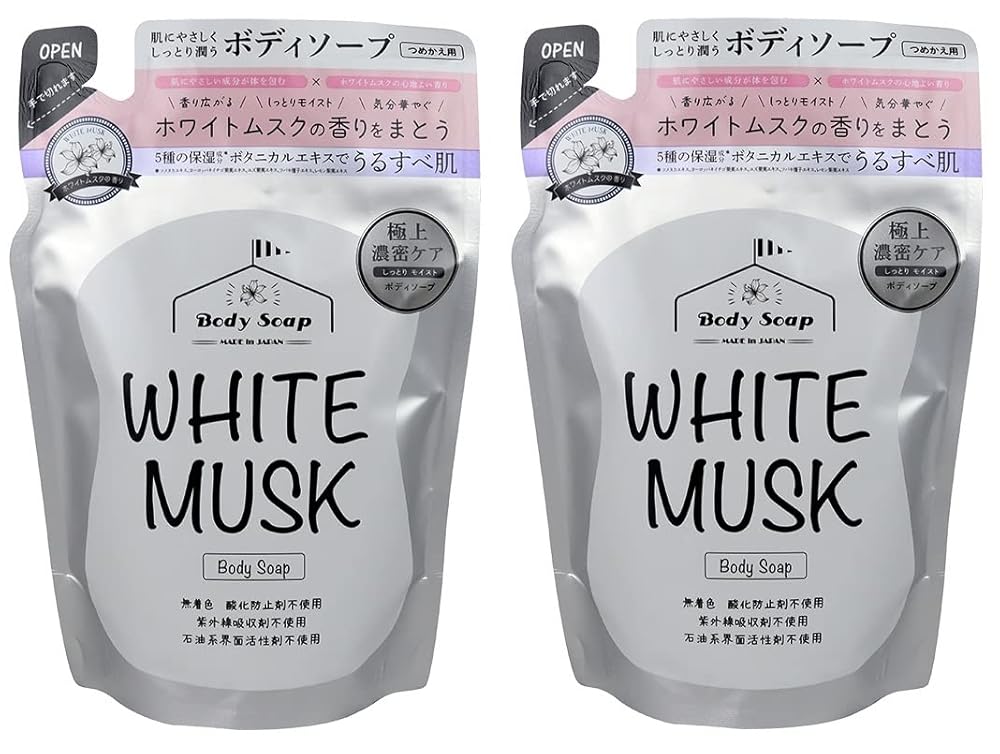 ボディソープ ホワイトムスク white musk 詰め替え用 400ml×2個セット 日本製 しっとりモイスト (2)