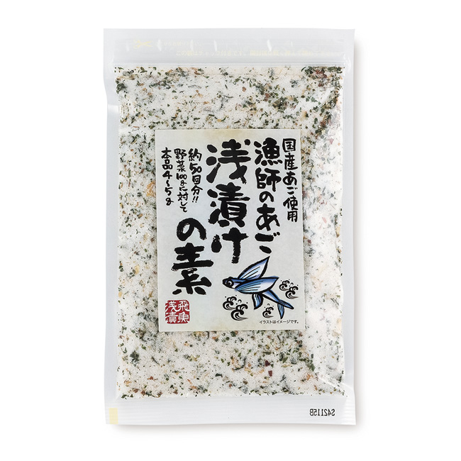| 主な仕様 | あごが落ちるほど美味しいといわれるあごの削り節粉末と天塩の焼塩、昆布、あきあみ、めかぶ、鰹節を混ぜ合わせた美味しい浅漬けの素です。メール便(ポスト投函)でのお届けになりますので日時の指定はできません。商品の発送より約2日〜3日でお届けできます。※本品製造工場では、卵・乳成分・小麦・えび・かにを含む製品を製造しています |