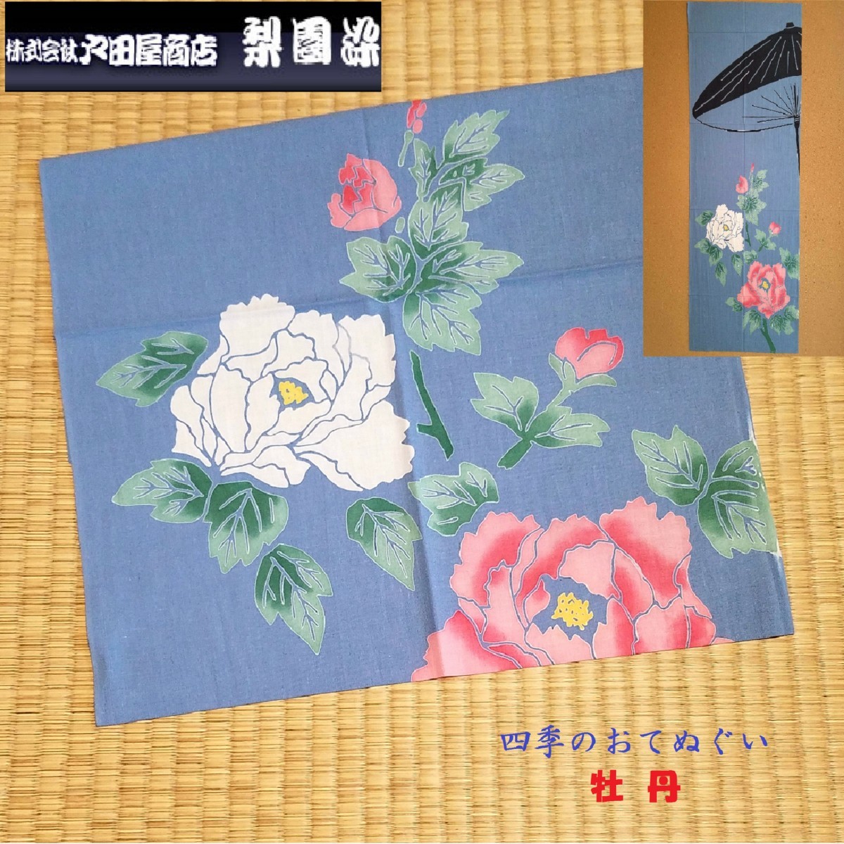 てぬぐい 牡丹 ぼたん 和花 紅白 春 四季 薬草 着物 晒木綿 注染 梨園染 戸田屋商店 インテリア 贈り物 お祝い 御礼 お土産 ネコポスは送料無料