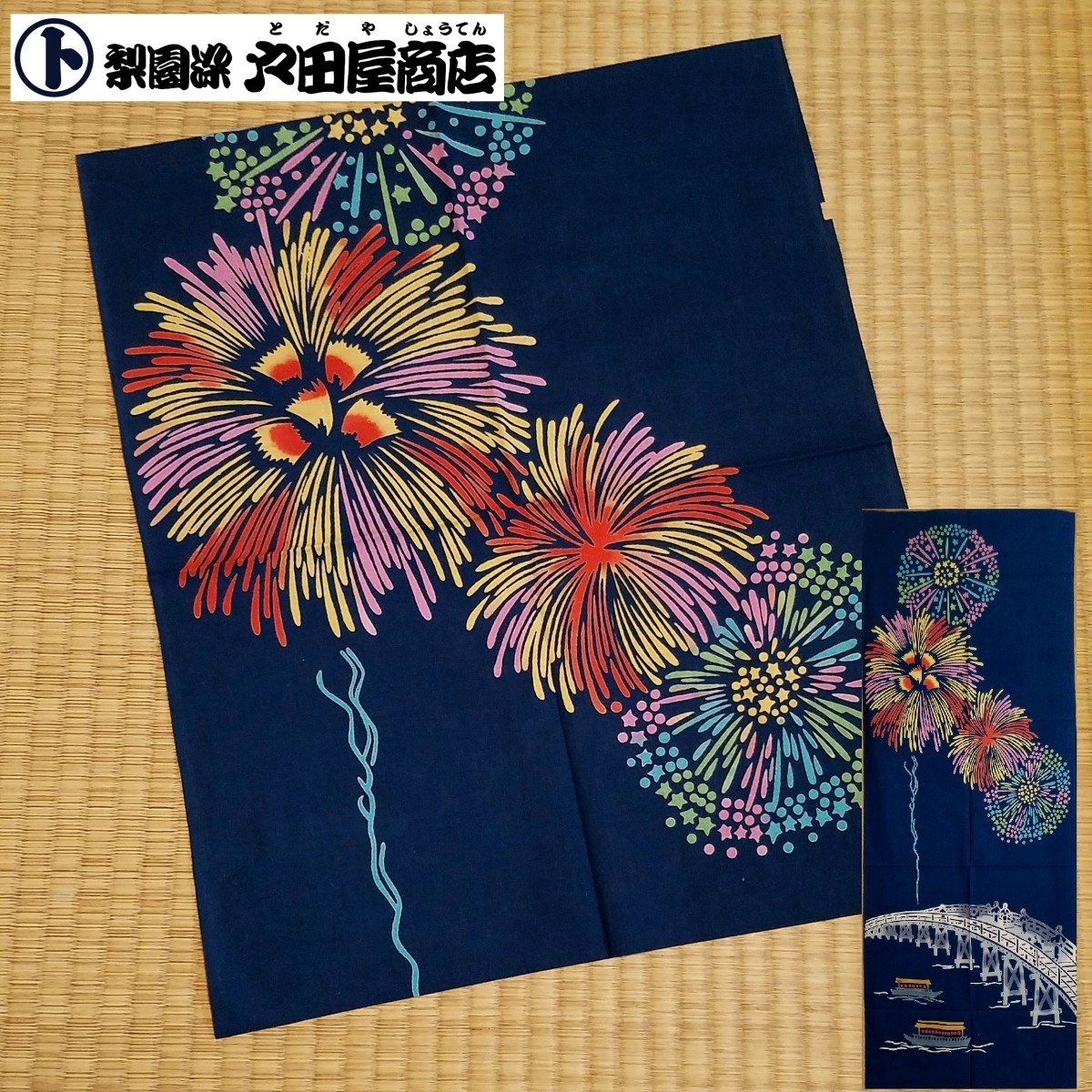 てぬぐい 花火 スターマイン 夜空 屋形船 文化 四季 夏 ハンカチ タオル 晒もめん 梨園染 戸田屋商店 贈り物 インテリア 趣味 ネコポス送料無料