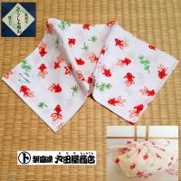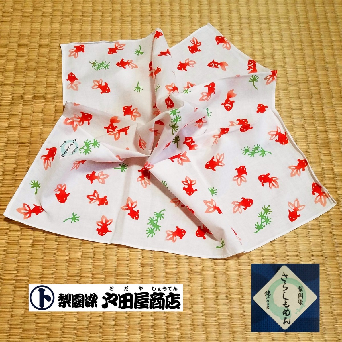 大判ハンカチ 金魚 水草 でめきん 清涼 夏祭り てぬぐい生地 マスク カバー 風呂敷 弁当包み 特岡 晒 もめん 梨園染 注染 戸田屋商店 贈り物 趣味 ネコポス発送