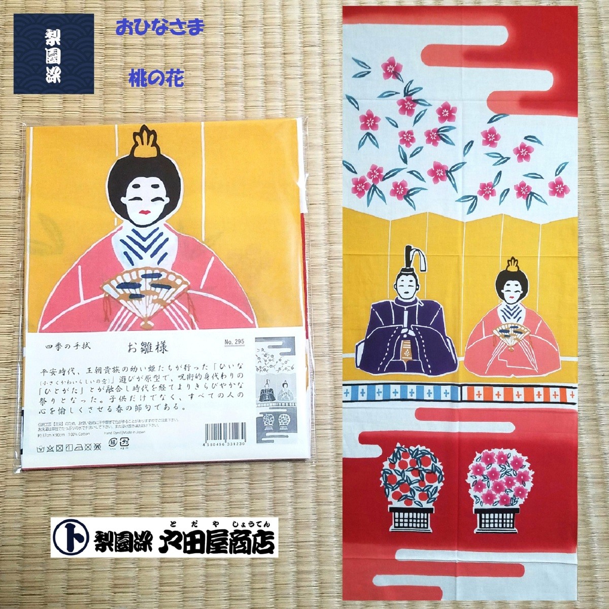 てぬぐい お雛様 お内裏様 桃の節句 ひな祭り 孫 春 桃の花 特岡 晒木綿 注染 梨園染 戸田屋商店 インテリア 贈り物 お祝 趣味 ネコポス対応商品