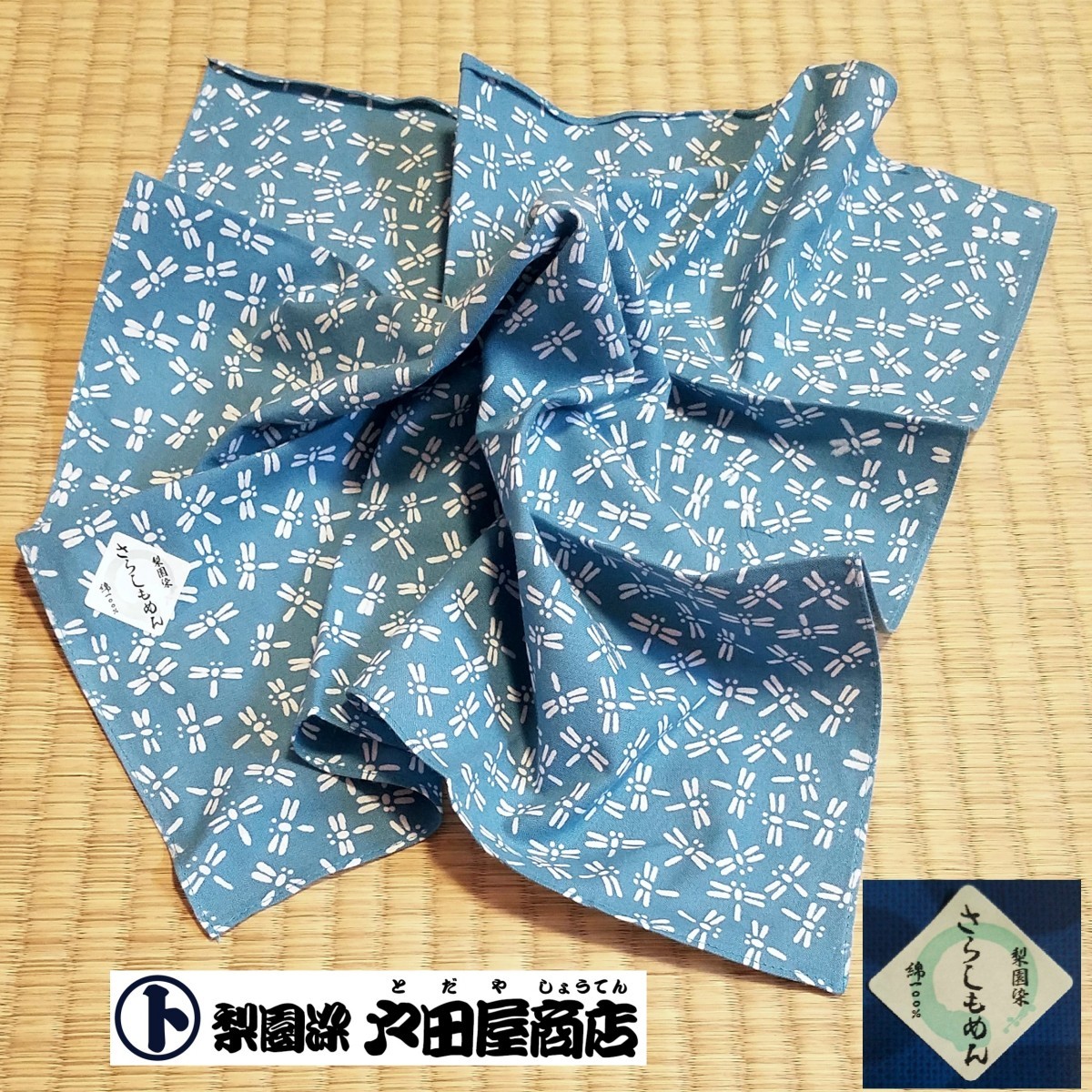 大判ハンカチ トンボ とんぼ てぬぐい生地 マスク カバー 通気性 速乾 風呂敷 弁当包み 特岡 晒 もめん 梨園染 注染 戸田屋商店 贈り物 趣味 ネコポス発送