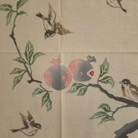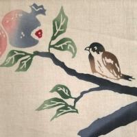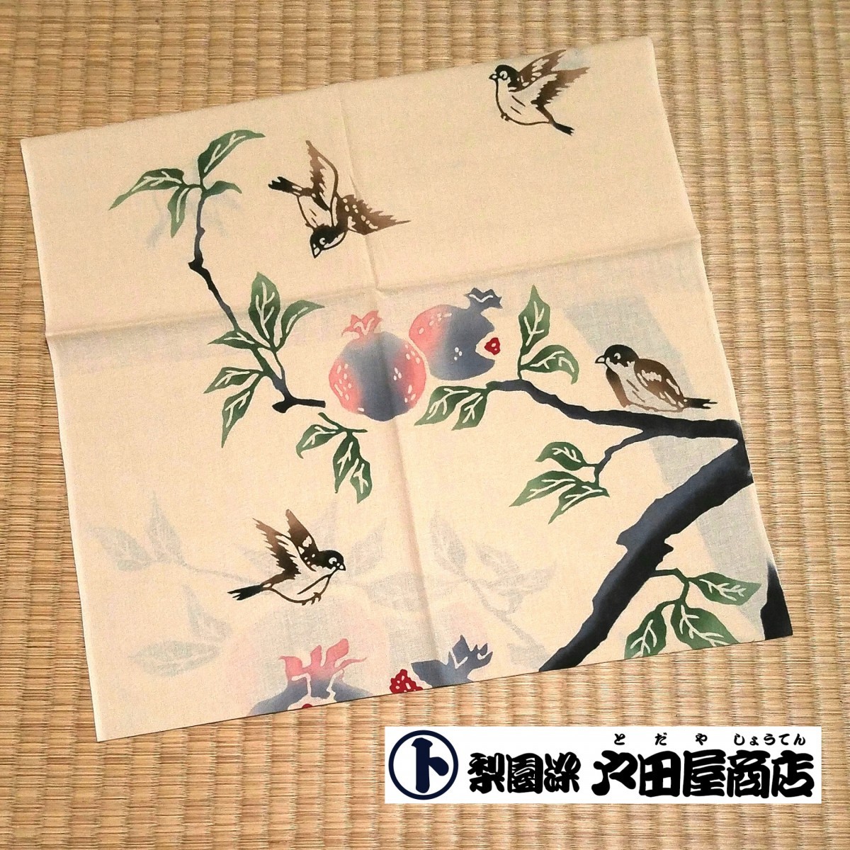 てぬぐい 石榴に雀 ざくろ 吉祥果 すずめ 野鳥 四季 秋 日本製 特岡 木綿 梨園染 注染 戸田屋商店 贈り物 趣味 インテリア ネコポス送料無料