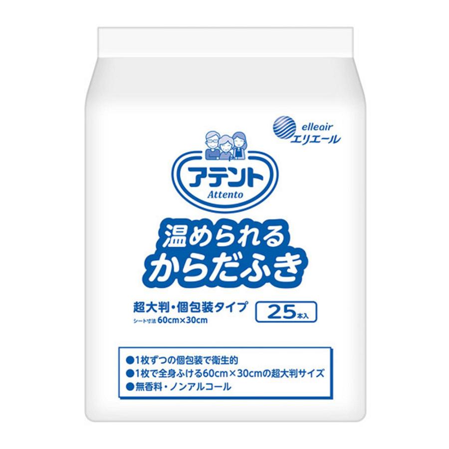 【6袋】アテント 温められるからだふき超大判 個包装タイプ 30×60cm 大王製紙 25本 (20733784)