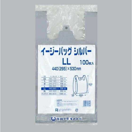 【100枚】イージーバッグ シルバー LL 福助工業 ブロック付き レジ袋 安い ビニール袋 ポリ袋 手提げ袋 100枚入
