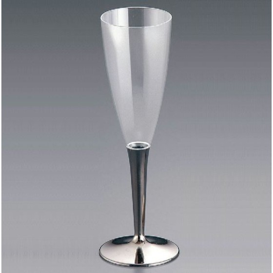 【代引き 不可】72個・SABERT クリアシャンパンフルート(シルバー ステム) モザイク 業務用 使い捨て プラスチック グラス 72個入 送料無料
