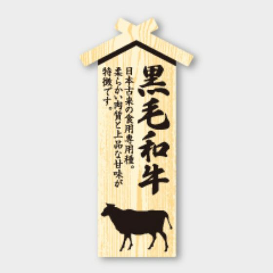 【100枚】D-13 プレート 黒毛和牛(32×67mm)カミイソ産商 使い捨て 業務用 飲食店 販売店 牛 ピック 食品用 精肉部位 プレート大 100枚入