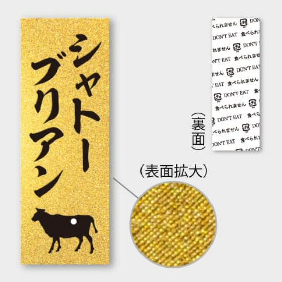 【100枚】D-408 シャトーブリアン プレート(18×50mm)カミイソ産商 使い捨て 業務用 飲食店 販売店 牛 ピック 食品用 精肉部位 プレートザラ金 100枚入