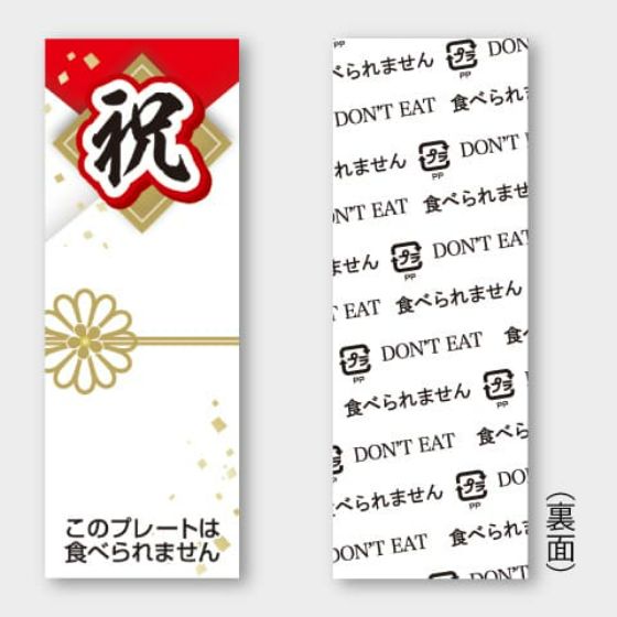 【100枚】D-415 祝 プレート(18×50mm)カミイソ産商 使い捨て 業務用 飲食店 販売店 イベント ピック 食品用 お祝いプレート 100枚入