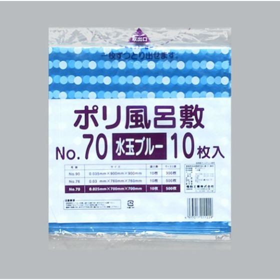 【10枚】No.70 水玉ブルー ポリ風呂敷(0.025×700×700mm) 福助工業 使い捨て お弁当 仕出し弁当 ビニール 風呂敷 10枚入