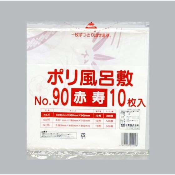 【10枚】No.90 赤寿 ポリ風呂敷(0.035×900×900mm) 福助工業 使い捨て お弁当 仕出し弁当 ビニール 風呂敷 10枚入