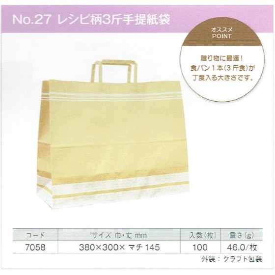 手提げ袋 No.27(レシピ柄3斤手提紙袋)