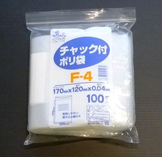チャック付ポリ袋 F-4 0.04×120×170mm 書き込み欄付 100枚