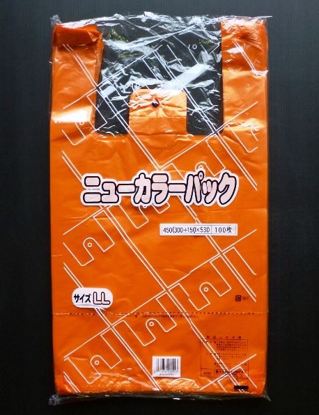 カラーレジ袋 オレンジ 無地 LL 530×300×150mm 100枚
