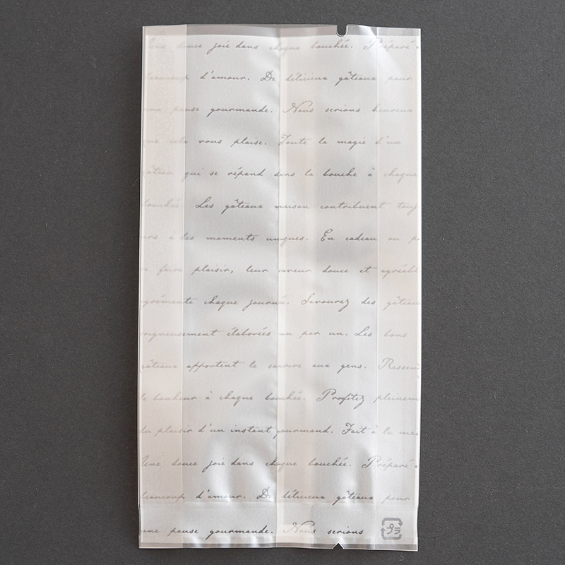 商品詳細サイズ幅80/全体幅105×高150mm(マチ:25mm)材質マットKOP20/LLD40商品説明定番資材として使いやすいマット素材×筆記体プリント。焼き菓子がうつくしく洗練された印象に仕上がります。●脱酸素剤:使用可●乾燥剤:使用可●アルコール揮散剤:使用可●ヒートシール:可
