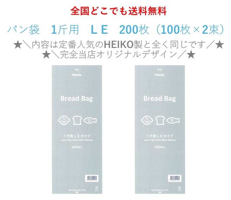 2025年新登場!限定店舗販売 オリジナル PP食パン袋 1斤用 L E 200枚 100枚×2束 送料無料 パン袋 オムツ HEIKO におい袋 オムツ袋