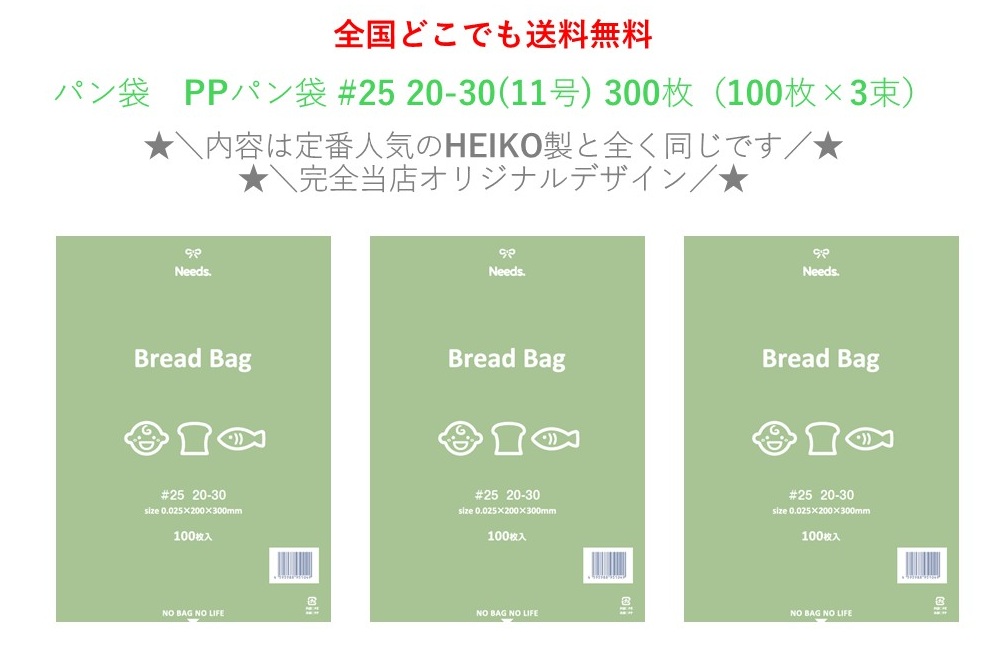 2025年新登場!限定店舗販売 オリジナル PPパン袋 #25 20-30 11号 300枚 100枚×3束 送料無料 パン袋 オムツ HEIKO におい袋 オムツ袋