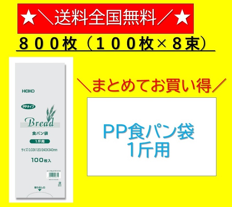PP食パン袋 1斤用 800枚入 100枚×8束 送料無料 パン袋