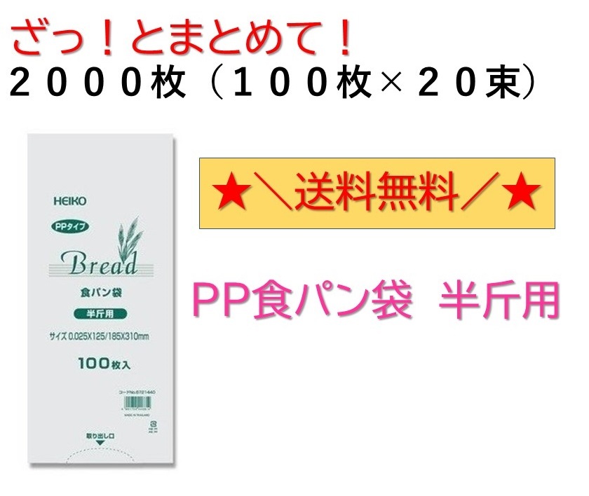 PP食パン袋 半斤用 2000枚入 100枚×20束 送料無料 パン袋