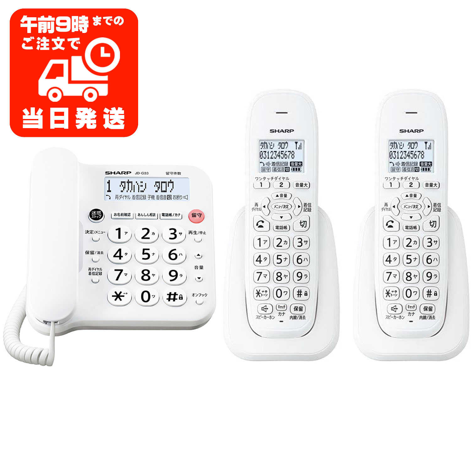 子機2台 シャープ JD-G33CL 電話機 デジタルコードレス JD G33CL ホワイト SHARP JDG33CL (JD-G32CLの後継機種) 親機のみ
