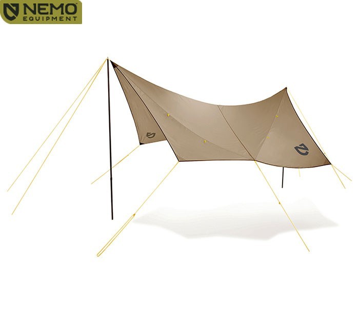 NEMOが新たに提案するグループキャンピング用タープです。新開発のスプリングリンク・リッジラインをタープのリッジラインに組み込むことにより、初めてタープを設営する初心者でも簡単かつ確実に一人で設営することが可能です。左右非対称かつ独自のデザインのタープは思いのままに形状を変えることができるため、十分なテンションを保ちながら様々な気候・地形及びユーザーの好みに合わせて最適な形状を作り出すことができます。