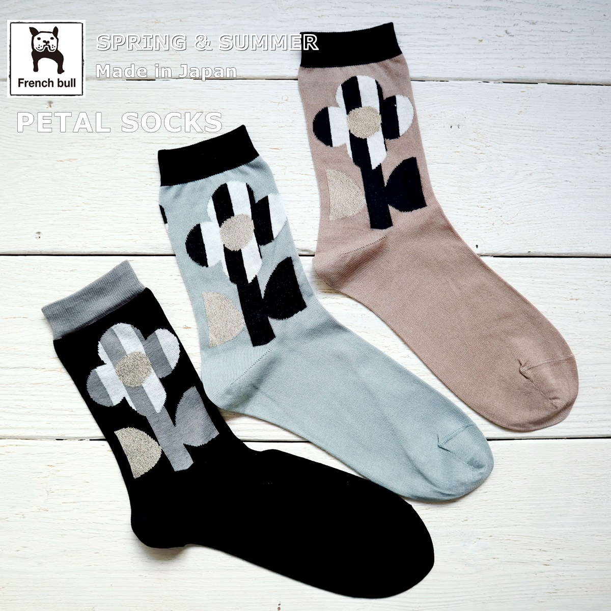 French Bull フレンチブル No.11-25113 ペタルソックス(3色)靴下 レディース 2025年春夏 ストライプとチェックの花柄 日本製