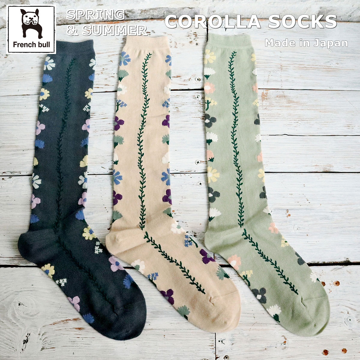 French Bull フレンチブル No.11-26125 カローラソックス(3色) 2026年春夏新作 宴 レディース 靴下 花冠をイメージした柄 ハイソックス 綿糸 日本製送料無料