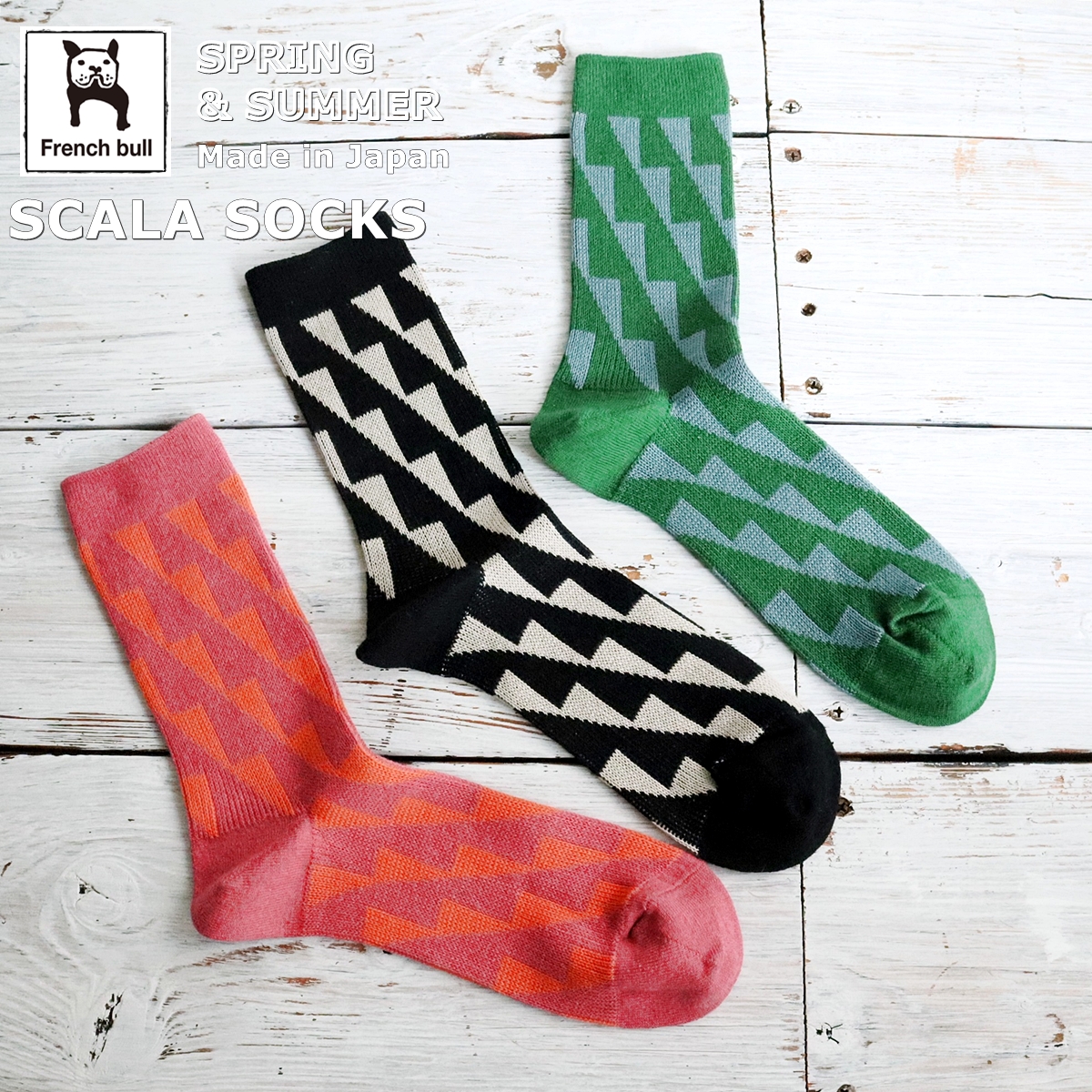 French Bull フレンチブル No.11-26127 スカーラソックス(3色) 2026年春夏新作 宴 レディース 靴下 幾何学柄 ジャガード編み シルケット綿糸 日本製送料無料