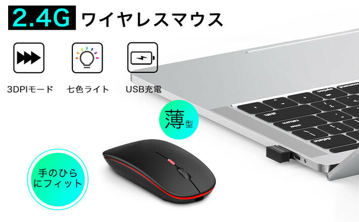 メーカー希望小売価格はメーカーサイトに基づいて掲載しています商品情報【最新版 7色ライト付き】 ワイヤレスマウス 無線マウス コンパクト 超薄型 静音 2.4GHz 800/1200/1600DPI 高精度 省エネモード 持ち運び便利 Mac/Windows/Surface/Microsoft Proに対応