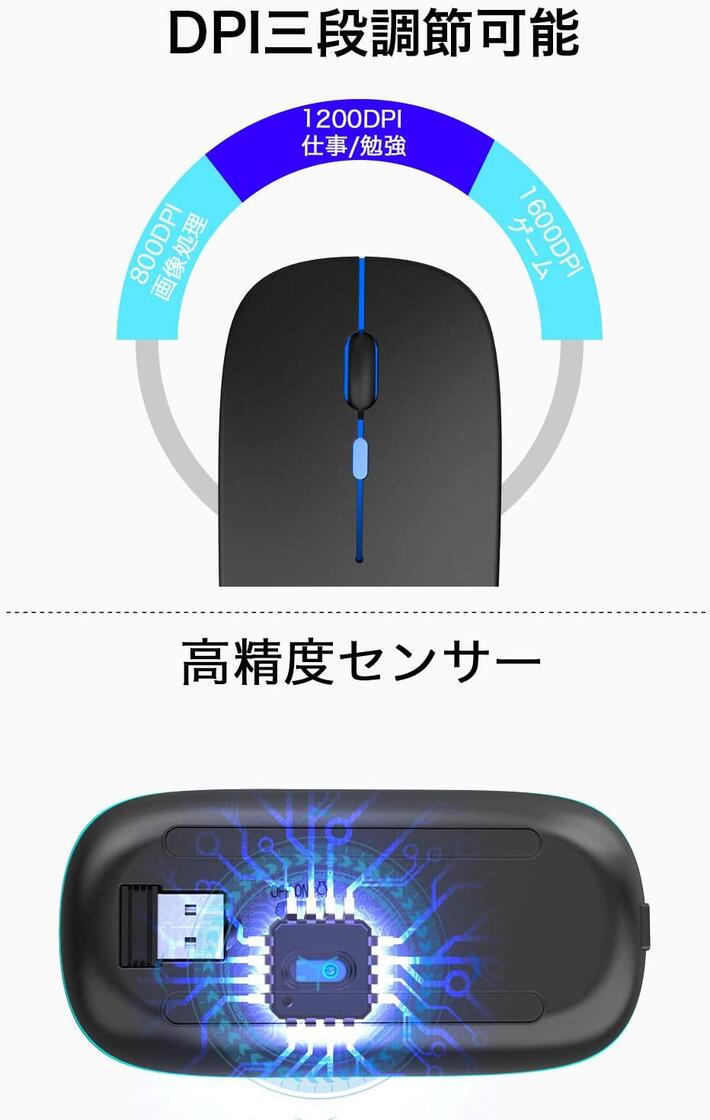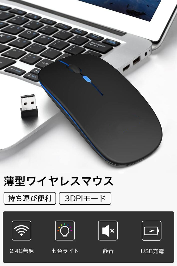【令和改良版 7色ライト付き】 ワイヤレスマウス 無線マウス コンパクト 超薄型 静音 2.4GHz 800/1200/1600DPI 高精度 省エネモード 持ち運び便利 Mac/Windows/Surface/Microsoft Proに対応