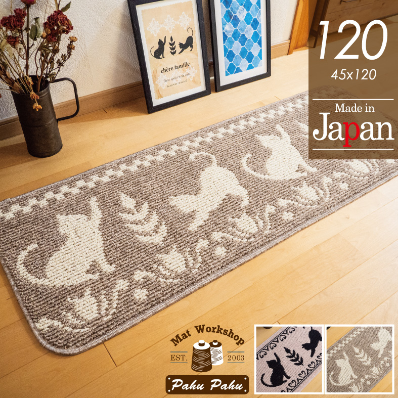 キッチンマット 120 滑り止め 日本製 おしゃれ かわいい 猫柄 ネコDC 45x120